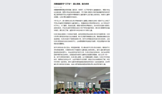 中青网对公司暑期“三下乡”此次社会实践活动进行了报道。