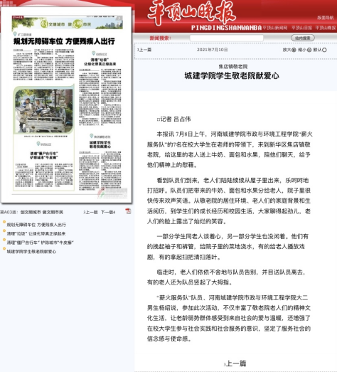 7月10日,平顶山晚报对公司暑期“三下乡”社会实践活动的此次活动进行了报道。