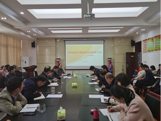 白燕主要从《深化新时代教育评价改革总体方案》出台的背景、总体要求、重点任务、组织实施等几个方面进行了认真细致的讲解。她强调,新时代教育以习近平新时代中国特色社会主义思想为指导,全面贯彻党的十九大和十九届二中、三中、四中、五中全会精神,全面贯彻党的教育方针,坚持社会主义办学方向,落实立德树人根本任务为指导思想。作为应用技术型城建大学,我们要深入贯彻落实《深化新时代教育评价改革总体方案》,完善立德树人体制机制,提高教育治理能力和水平,加快推进教育现代化,建设教育强国,办好人民满意的教育。