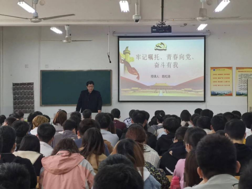 陈松涛以“牢记嘱托、青春向党、奋斗有我”为题,讲述了近代以来中华民族经历的一系列历史事件,从鸦片战争到五四运动,从中国共产党诞生到土地革命,从抗日战争到新民主主义革命胜利,从新中国成立到社会主义建设曲折探索,从十一届三中全会到中国特色社会主义开创,从新的形势下坚持和发展中国特色社会主义到中国特色社会主义进入新时代……,生动阐述了在全党开展“四史”学习教育的重要意义;论证了“党史是中国共产党的领导不断走向成熟的实践史”、“新中国史是中国共产党推进建设新中国的实践史”、“改革开放史是中国共产党推进社会主义制度自我完善和发展的实践史”、“中国共产党是引领世界社会主义发展的重要政治力量”。百年实践证明,中国共产党始终以“为人民谋幸福,为民族谋复兴”为己任,带领中国人民实现了从站起来、富起来到强起来的伟大飞跃。