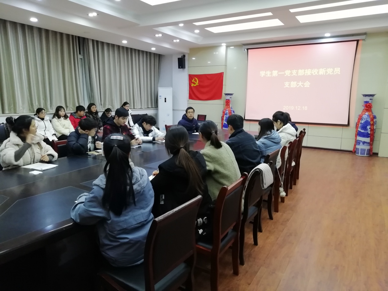 按照接收新党员程序,贺攀等十一位同学分别宣读入党志愿、汇报自己对党的认识、入党动机及有关情况;之后由发展对象介绍人分别向大会报告十一位同学培养考察情况,对其能否入党表明态度;支委会向大会报告对发展对象的审查情况,并就能否入党表明态度;经过支部党员充分讨论及不记名投票表决,一致同意贺攀等十一位同学加入中国共产党。