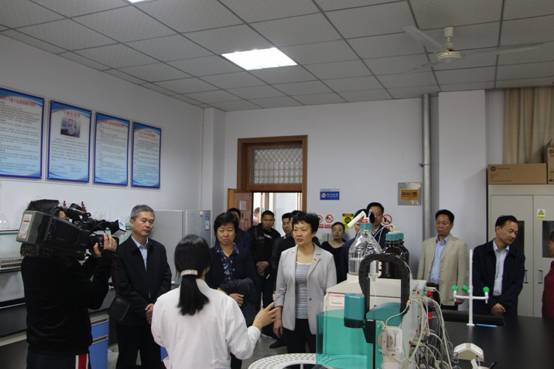 李萍一行参观了重点实验室,并就重点实验室的建设、高校服务地方、以及如何更好紧抓平顶山经济转型发展,更快的促进科研成果转化提出建设性建议。她指出环境污染防治是一场攻坚战,生态文明建设是一场持久战,高校应该以科技为引领,为我市污水治理工作提供科学指导,将科技成果转化运用到污水治理当中。