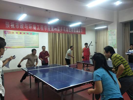 9日下午四点,在四楼教工之家首先举行了乒乓球团体比赛。比赛场上,选手们积极进取,奋力拼搏,拼实力,拼水平,拼智慧。比赛精彩迭出,现场不时爆发出阵阵掌声、助威声。经过激烈角逐,团体比赛圆满结束,安全工程教研室代表队获第一名、给排水科学与工程教研室代表队获第二名、环境工程教研室代表队获第三名。