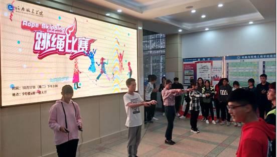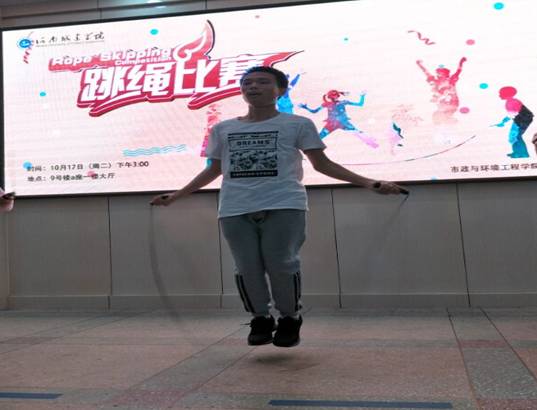 (通讯员:黄战峰,黄梦楠)为弘扬传统文化,提高身体素质,促进公司老员工的交流与沟通。球王会于2017年10月17日下午5点在九号教学楼一楼大厅内举行了跳绳比赛。市政公司党总支副书记朱泮民,团总支书记黄战峰以及全体大一员工参加了此次活动。