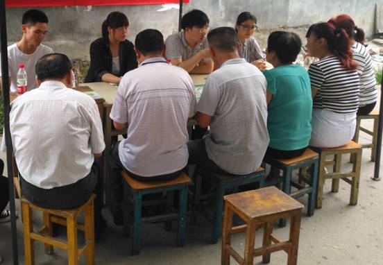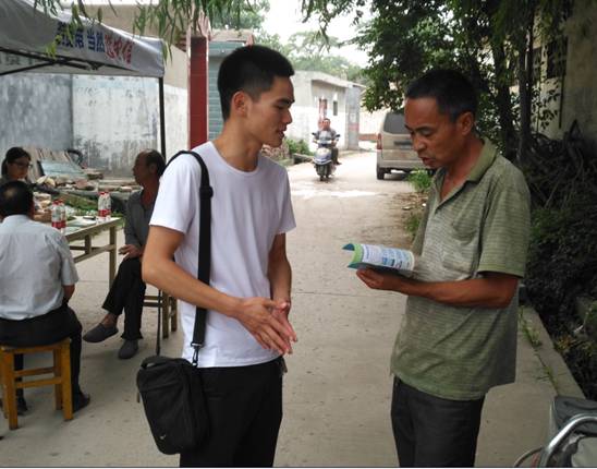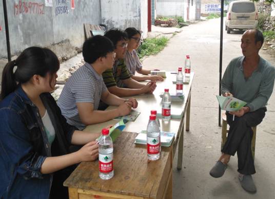 活动期间参与老师将活动者分成两组,一组在井营村沿街宣传,一组在井营村村大队处设点宣传。在沿街与村民的交流中,服务队队员们通过为他们发放环境保护手册,普及有关卫生、安全的相关知识,让更多的村民来认识周边环境造成可能对自身健康造成的危害,号召村民构建整洁、卫生的生活环境。在设点宣传处的老师和志愿者们积极为村民解疑,让村民们意识到环保的相关知识及环保的重要性,活动得到其他过路村民一致认可。最后老师及志愿者们与参与的村民合影留念。