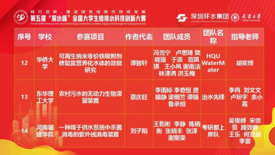 经过答辩和作品展示的综合角逐,3支队伍的参赛作品分别获得二等奖、三等奖和团体优秀奖。其中,由刘彪,高宏斌指导,员工吴慧南、靳一鸣、赵珈莹、梁婷婷的参赛作品《一体化原位水体修复生态浮船》获得二等奖,由吴俊峰,宋忠贤指导,员工刘子阳、王乾彬、李静、陈柄衡的参赛作品《一种用于供水系统中杀菌消毒的紫外线消毒装置》获得三等奖,由吴俊峰、高宏斌指导,员工王伟泽、张瑞、张瑞、郝怡雯、康露的参赛作品《一种节水节能浮筒滤池》获得团体优秀奖。