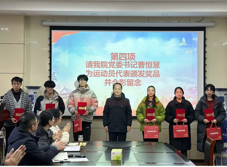 表彰会上,曹恒慧、朱新锋分别为万米接力赛优秀运动员、华光体育活动先进个人颁发荣誉证书,并与获奖代表合影留念。