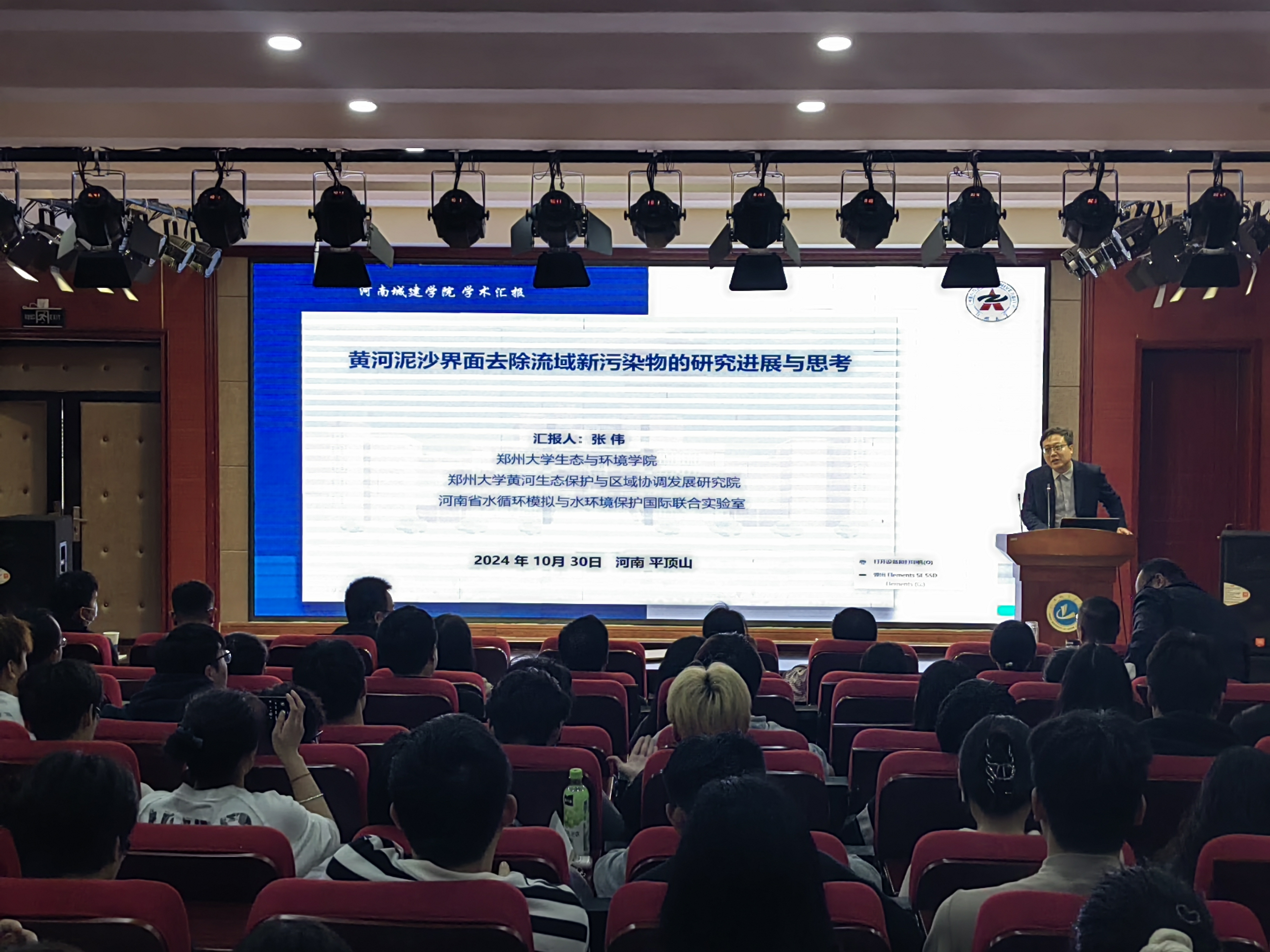 接下来,郑州大学张伟副教授做了《黄河泥沙界面去除流域新污染物的研究进展与思考》的主题报告。张伟副教授介绍了黄河流域新污染物赋存问题,以及关于泥沙界面去除新污染物的研究进展。