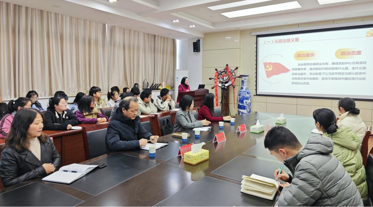 在授课过程中,毛艳丽表示,党的二十届三中全会是在以中国式现代化全面推进强国建设、民族复兴伟业的关键时期召开的一次十分重要的会议,全会通过的《决定》是新时代新征程上推动全面深化改革向广度和深度进军的总动员、总部署,充分释放了改革不停顿、开放不止步的强烈信号。要深刻认识到这次全会的重大意义,深刻领会习近平总书记在全会上发表的重要讲话精神,全面准确把握《决定》提出的进一步全面深化改革重大举措,切实把思想和行动统一到党中央决策部署上来,坚定不移听党话、跟党走。