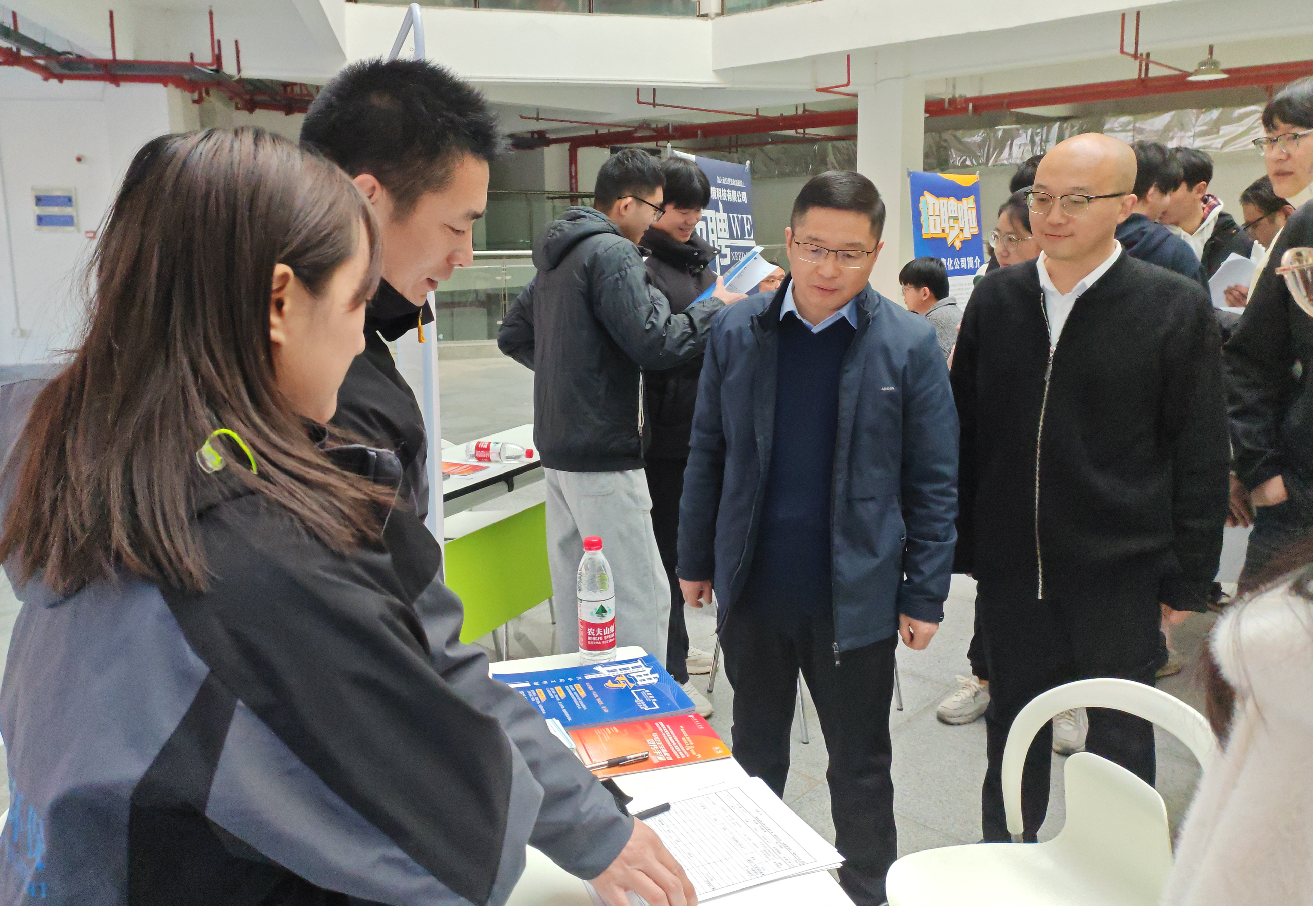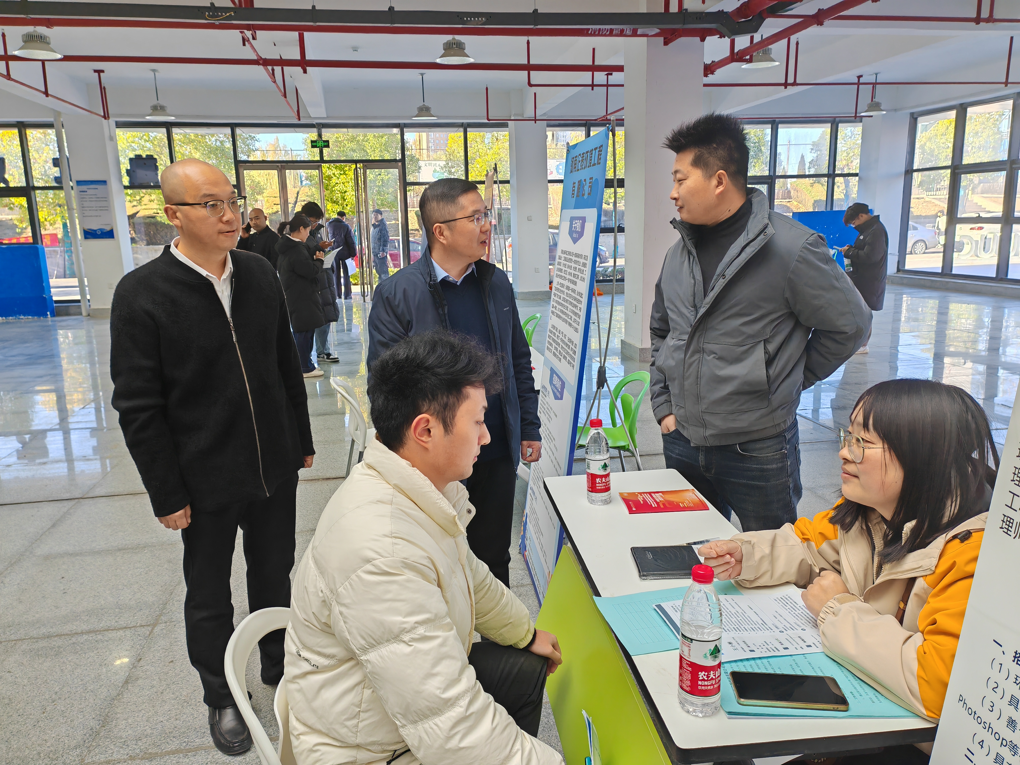 11月29日上午,公司在老员工活动中心一楼大厅举办2025届毕业生冬季双选会。经理姜忠峰携院领导班子成员及辅导员等一行来到双选会现场,了解用人单位需求和就业市场,积极向用人单位推介毕业生,公司人才招聘处处长樊铮钰等一行到现场指导。